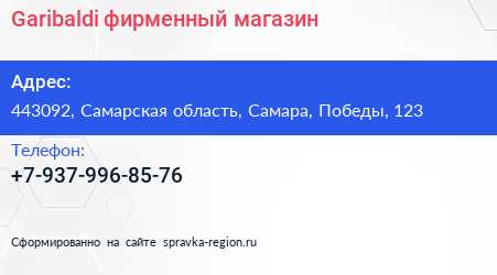 Garibaldi, фирменный магазин по адресу 443092, Самарская область, Самара, Победы, 123 в дальнейшем Организация, размещена в следующих категориях: