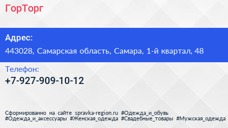 ГорТорг по адресу 443028, Самарская область, Самара, 1-й квартал, 48 в дальнейшем Организация, размещена в следующих категориях: