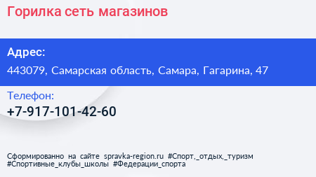 Горилка, сеть магазинов по адресу 443079, Самарская область, Самара, Гагарина, 47 в дальнейшем Организация, размещена в следующих категориях: