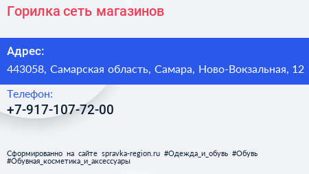 Горилка, сеть магазинов по адресу 443058, Самарская область, Самара, Ново-Вокзальная, 12 в дальнейшем Организация, размещена в следующих категориях: