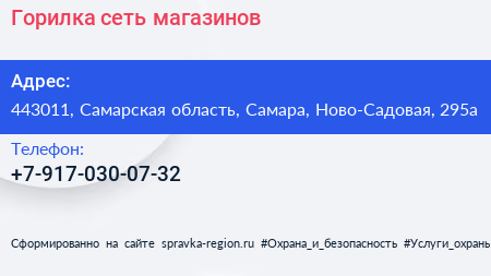 Горилка, сеть магазинов по адресу 443011, Самарская область, Самара, Ново-Садовая, 295а в дальнейшем Организация, размещена в следующих категориях: