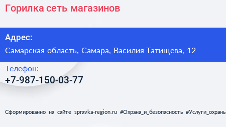 Горилка, сеть магазинов по адресу Самарская область, Самара, Василия Татищева, 12 в дальнейшем Организация, размещена в следующих категориях: