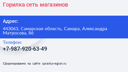 Горилка, сеть магазинов по адресу 443063, Самарская область, Самара, Александра Матросова, 86 в дальнейшем Организация, размещена в следующих категориях: