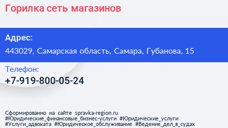 Горилка, сеть магазинов по адресу 443029, Самарская область, Самара, Губанова, 15 в дальнейшем Организация, размещена в следующих категориях: