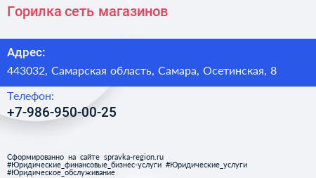 Горилка, сеть магазинов по адресу 443032, Самарская область, Самара, Осетинская, 8 в дальнейшем Организация, размещена в следующих категориях: