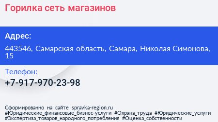 Горилка, сеть магазинов по адресу 443546, Самарская область, Самара, Николая Симонова, 15 в дальнейшем Организация, размещена в следующих категориях:
