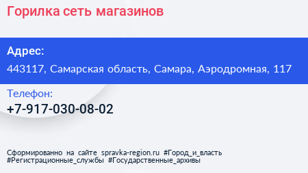 Горилка, сеть магазинов по адресу 443117, Самарская область, Самара, Аэродромная, 117 в дальнейшем Организация, размещена в следующих категориях: