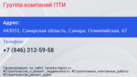 Группа компаний ПТИ по адресу 443051, Самарская область, Самара, Олимпийская, 67 в дальнейшем Организация, размещена в следующих категориях: