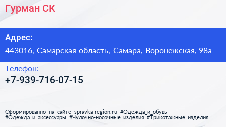 Гурман-СК по адресу 443016, Самарская область, Самара, Воронежская, 98а в дальнейшем Организация, размещена в следующих категориях: