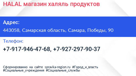 HALAL, магазин халяль-продуктов по адресу 443058, Самарская область, Самара, Победы, 90 в дальнейшем Организация, размещена в следующих категориях: