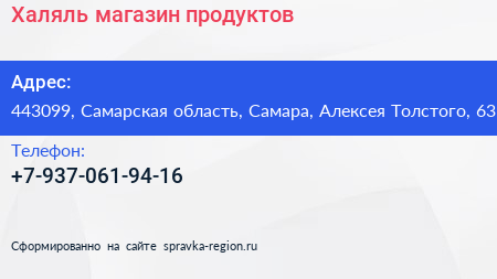 Халяль, магазин продуктов по адресу 443099, Самарская область, Самара, Алексея Толстого, 63 в дальнейшем Организация, размещена в следующих категориях:
