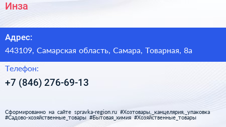 Инза по адресу 443109, Самарская область, Самара, Товарная, 8а в дальнейшем Организация, размещена в следующих категориях: