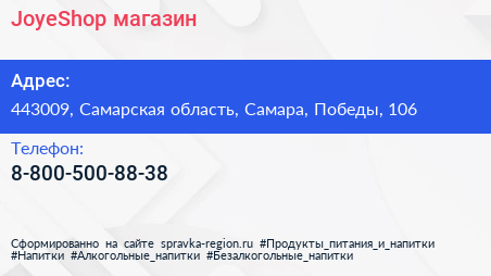 JoyeShop, магазин по адресу 443009, Самарская область, Самара, Победы, 106 в дальнейшем Организация, размещена в следующих категориях: