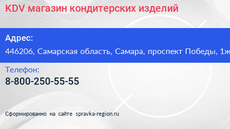 KDV, магазин кондитерских изделий по адресу 446206, Самарская область, Самара, проспект Победы, 1ж в дальнейшем Организация, размещена в следующих категориях: