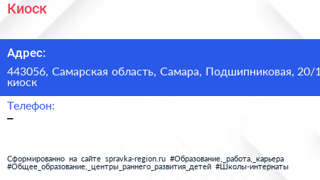 Киоск по адресу 443056, Самарская область, Самара, Подшипниковая, 20/1 киоск в дальнейшем Организация, размещена в следующих категориях:
