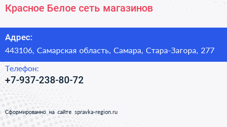 Красное & Белое, сеть магазинов по адресу 443106, Самарская область, Самара, Стара-Загора, 277 в дальнейшем Организация, размещена в следующих категориях: