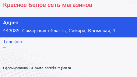 Красное & Белое, сеть магазинов по адресу 443035, Самарская область, Самара, Кромская, 4 в дальнейшем Организация, размещена в следующих категориях: