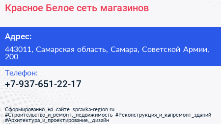 Красное & Белое, сеть магазинов по адресу 443011, Самарская область, Самара, Советской Армии, 200 в дальнейшем Организация, размещена в следующих категориях: