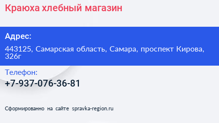 Краюха, хлебный магазин по адресу 443125, Самарская область, Самара, проспект Кирова, 326г в дальнейшем Организация, размещена в следующих категориях: