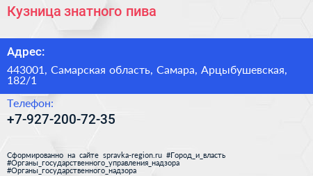 Кузница знатного пива по адресу 443001, Самарская область, Самара, Арцыбушевская, 182/1 в дальнейшем Организация, размещена в следующих категориях: