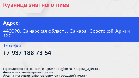 Кузница знатного пива по адресу 443090, Самарская область, Самара, Советской Армии, 120 в дальнейшем Организация, размещена в следующих категориях: