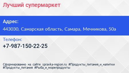 Лучший, супермаркет по адресу 443030, Самарская область, Самара, Мечникова, 50а в дальнейшем Организация, размещена в следующих категориях: