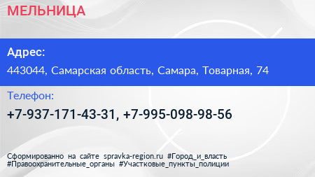 МЕЛЬНИЦА по адресу 443044, Самарская область, Самара, Товарная, 74 в дальнейшем Организация, размещена в следующих категориях: