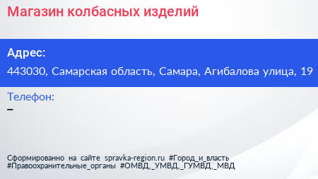 Магазин колбасных изделий по адресу 443030, Самарская область, Самара, Агибалова улица, 19 в дальнейшем Организация, размещена в следующих категориях: