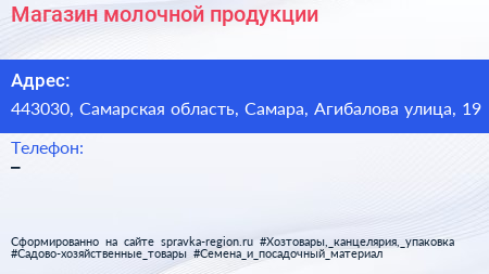 Магазин молочной продукции по адресу 443030, Самарская область, Самара, Агибалова улица, 19 в дальнейшем Организация, размещена в следующих категориях: