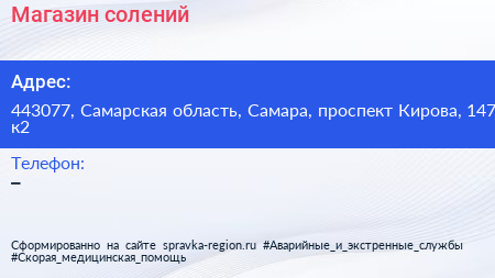 Магазин солений по адресу 443077, Самарская область, Самара, проспект Кирова, 147 к2 в дальнейшем Организация, размещена в следующих категориях: