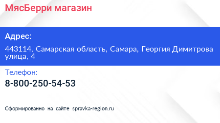 МясБерри, магазин по адресу 443114, Самарская область, Самара, Георгия Димитрова улица, 4 в дальнейшем Организация, размещена в следующих категориях: