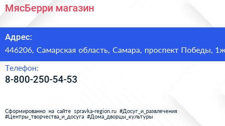 МясБерри, магазин по адресу 446206, Самарская область, Самара, проспект Победы, 1ж в дальнейшем Организация, размещена в следующих категориях: