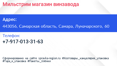 Мильстрим, магазин винзавода по адресу 443056, Самарская область, Самара, Луначарского, 60 в дальнейшем Организация, размещена в следующих категориях: