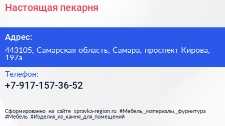 Настоящая пекарня по адресу 443105, Самарская область, Самара, проспект Кирова, 197а в дальнейшем Организация, размещена в следующих категориях: