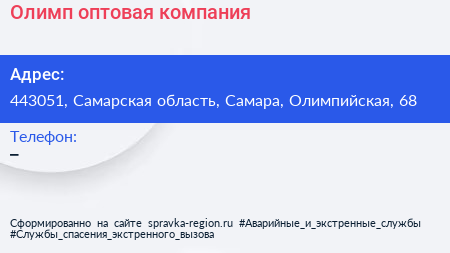 Олимп, оптовая компания по адресу 443051, Самарская область, Самара, Олимпийская, 68 в дальнейшем Организация, размещена в следующих категориях: