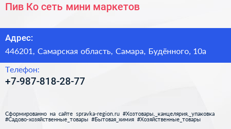 Пив & Ко, сеть мини-маркетов по адресу 446201, Самарская область, Самара, Будённого, 10а в дальнейшем Организация, размещена в следующих категориях: