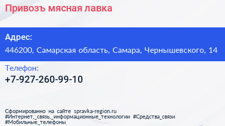 Привозъ, мясная лавка по адресу 446200, Самарская область, Самара, Чернышевского, 14 в дальнейшем Организация, размещена в следующих категориях: