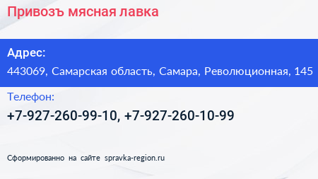 Привозъ, мясная лавка по адресу 443069, Самарская область, Самара, Революционная, 145 в дальнейшем Организация, размещена в следующих категориях: