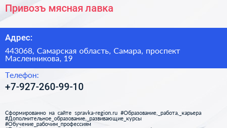 Привозъ, мясная лавка по адресу 443068, Самарская область, Самара, проспект Масленникова, 19 в дальнейшем Организация, размещена в следующих категориях: