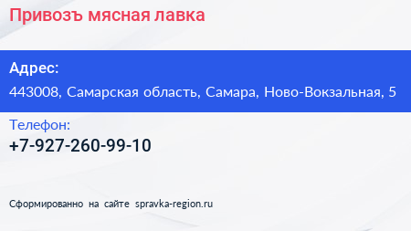 Привозъ, мясная лавка по адресу 443008, Самарская область, Самара, Ново-Вокзальная, 5 в дальнейшем Организация, размещена в следующих категориях:
