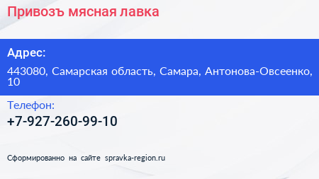Привозъ, мясная лавка по адресу 443080, Самарская область, Самара, Антонова-Овсеенко, 10 в дальнейшем Организация, размещена в следующих категориях: