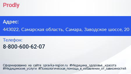 Prodly по адресу 443022, Самарская область, Самара, Заводское шоссе, 20 в дальнейшем Организация, размещена в следующих категориях: