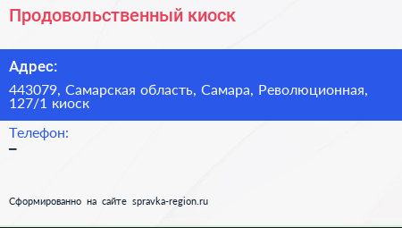 Продовольственный киоск по адресу 443079, Самарская область, Самара, Революционная, 127/1 киоск в дальнейшем Организация, размещена в следующих категориях: