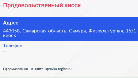 Продовольственный киоск по адресу 443058, Самарская область, Самара, Физкультурная, 15/1 киоск в дальнейшем Организация, размещена в следующих категориях: