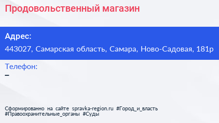 Продовольственный магазин по адресу 443027, Самарская область, Самара, Ново-Садовая, 181р в дальнейшем Организация, размещена в следующих категориях: