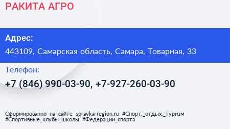 РАКИТА-АГРО по адресу 443109, Самарская область, Самара, Товарная, 33 в дальнейшем Организация, размещена в следующих категориях: