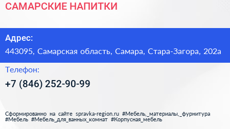 САМАРСКИЕ НАПИТКИ по адресу 443095, Самарская область, Самара, Стара-Загора, 202а в дальнейшем Организация, размещена в следующих категориях: