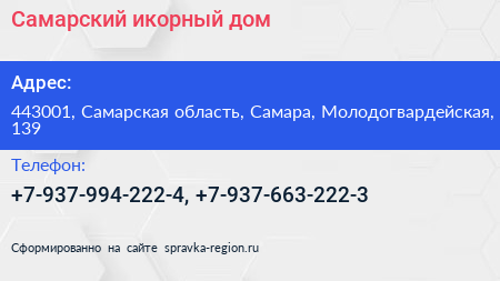 Самарский икорный дом по адресу 443001, Самарская область, Самара, Молодогвардейская, 139 в дальнейшем Организация, размещена в следующих категориях: