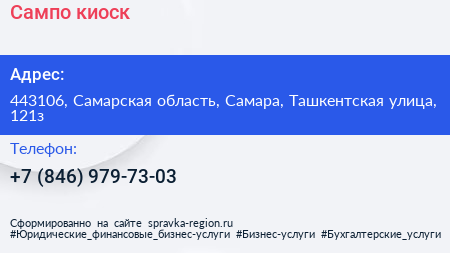 Сампо, киоск по адресу 443106, Самарская область, Самара, Ташкентская улица, 121з в дальнейшем Организация, размещена в следующих категориях: