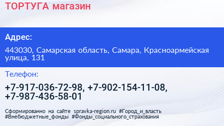 ТОРТУГА, магазин по адресу 443030, Самарская область, Самара, Красноармейская улица, 131 в дальнейшем Организация, размещена в следующих категориях:
